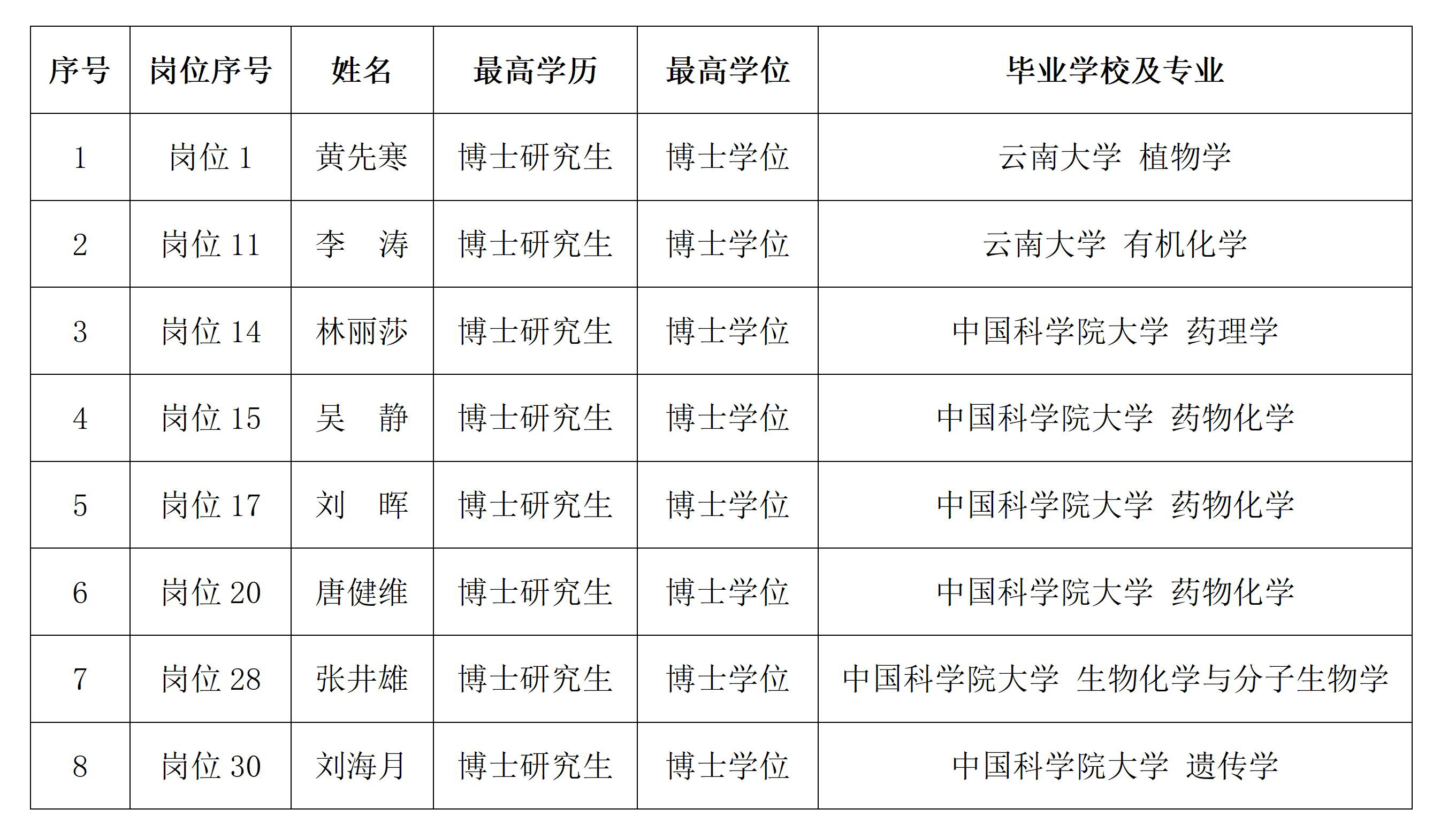 中国科学院昆明植物研究所关于助理研究员岗位拟聘人员的公示