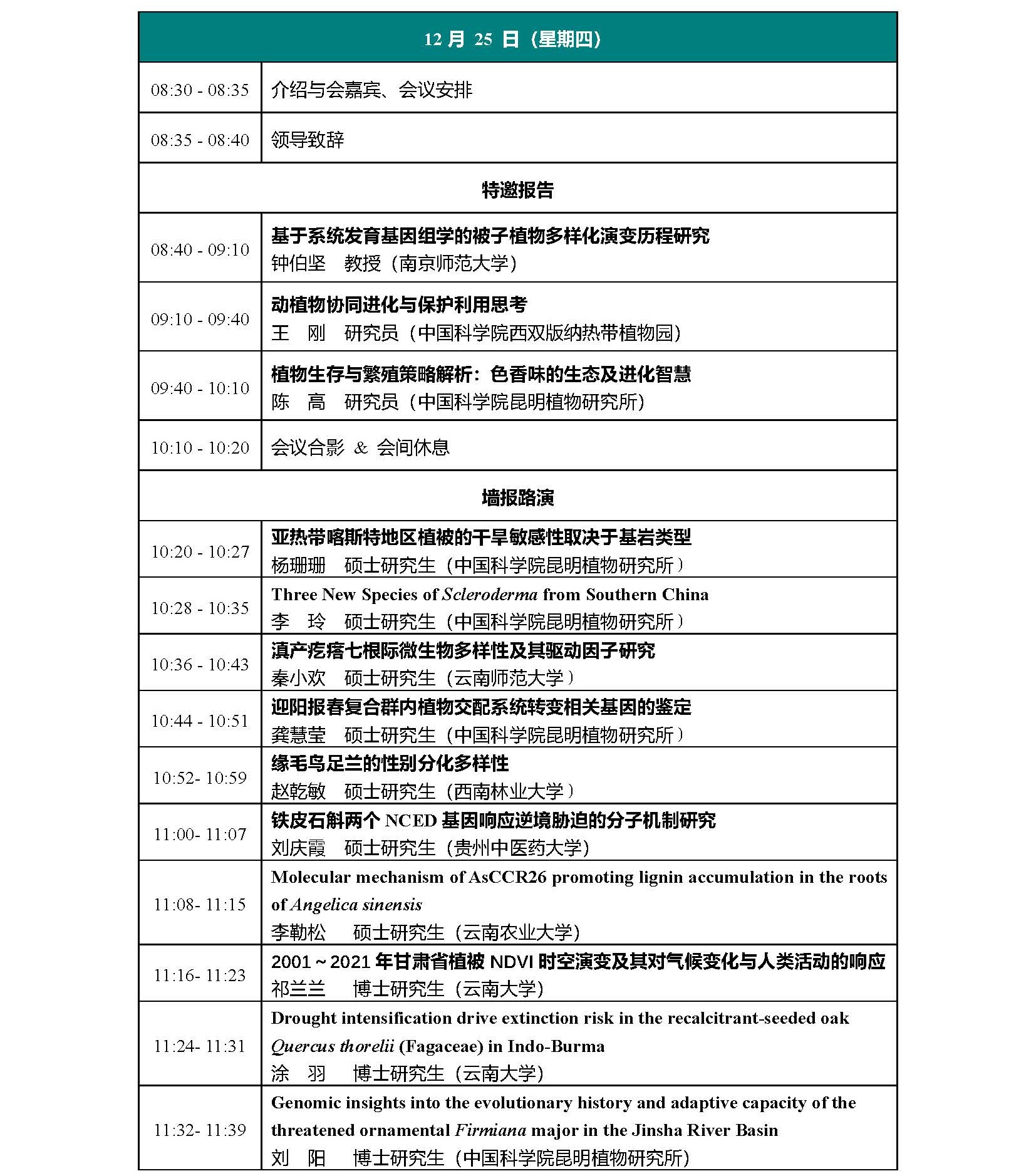 第十一届吴征镒生物多样性青年学术论坛会务组 2025年12月22日 |