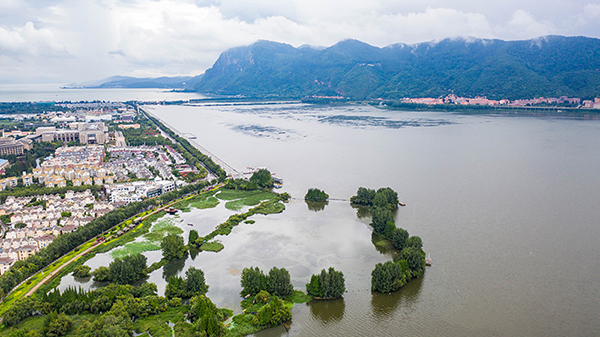 7月1日拍摄的滇池湿地一景(无人机照片)。新华社记者 胡超 摄