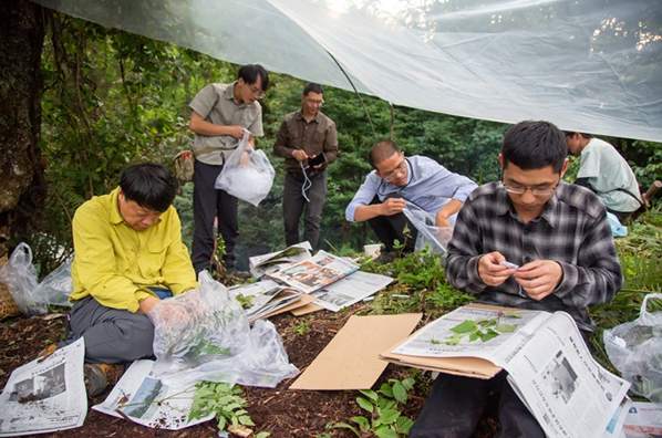 宿营地压标本(孙军摄) 考察队队员不忘初心,弘扬老一辈科学家不畏艰苦的青藏科考精神,克服了野外科考中的三大恶魔,山高(线路长)、路险(陡峭及悬崖)、缺水等困难(图5),通过“e科考”APP获取了丰富的第一手物种分布及群落组成数据,拍摄了一批高黎贡山典型植被特征的精美图片和影像资料,并采集了重要植物标本300余份和目标物种的居群材料。