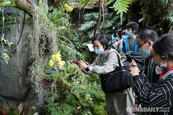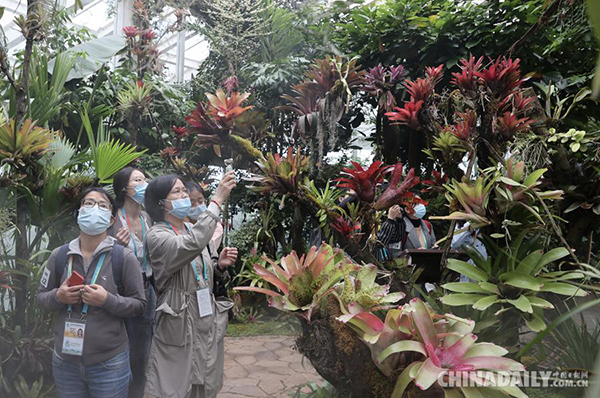 中国日报昆明10月14日电(记者 冯永斌)2021年10月14日,联合国《生物多样性公约》第十五次缔约方大会(COP15)参会记者在“扶荔宫”参观采访。中科院昆明植物研究所昆明植物园“扶荔宫”生物多样性体验园,是此次会议生物多样性室外展览展示项目之一。