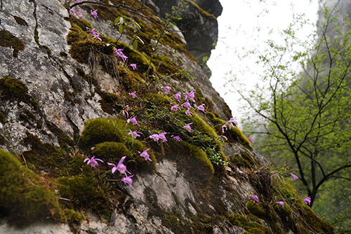 独蒜兰属植物的原生境(昆明植物所供图) 在近10年的工作中,张石宝团队收集保存了全属90%以上的物种,通过远缘杂交培育出17个独蒜兰新品种,独蒜兰属植物的自然花期为春季或秋季,研究团队还培育出了冬季开花的品种,建立了独蒜兰属16个种的HPLC指纹图谱,进行了该属药用种质资源的筛查,通过与《中国药典》收录种对比,发现属内多个物种都具备替代药典种类的潜力。 同时,研究团队发现药用独蒜兰产量和品质的形成与光照、水分等环境因子的关系密切,30~65%全光照、水分充足或轻度干旱胁迫有利于药用栽培过程中有效成分的积累,对该属植物环境适应性的认识为其生产栽培技术的制定奠定了基础。 独蒜兰属植物种子细如粉尘,胚发育不完全,缺少为种子萌发提供营养的胚乳,在自然条件下萌发率极低。研究团队开展了独蒜兰的人工繁殖技术研究,突破了种子的无菌萌发技术,实现规模化的种苗繁殖,并探索了独蒜兰的种子共生萌发和无性克隆技术,已经取得基本成功。