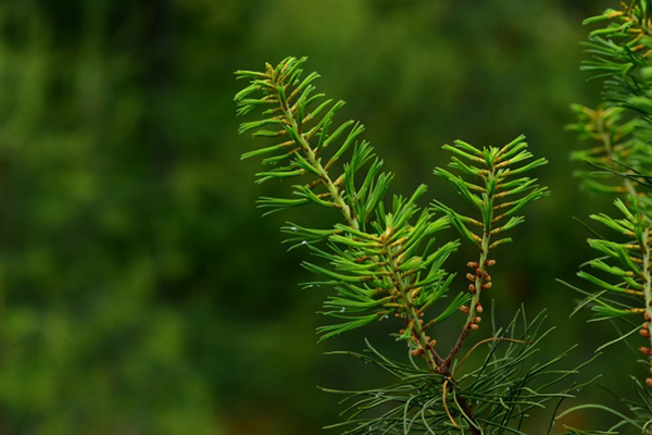 新发的针叶 毛枝五针松是高达20米的乔木,干形通直、树形优美、姿态高雅,是优良的园艺观赏植物。但生长很缓慢,据测量,胸径达到40厘米的树木,需要生长150年左右,可作盆景;木材芳香耐久,材质致密坚韧,是制作高档家具的优良材料。