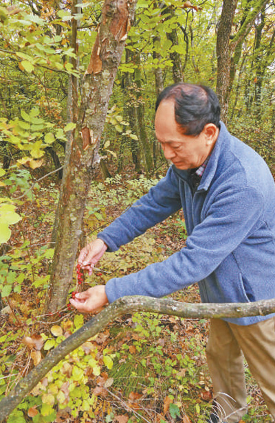 2016年,管开云在国外一家植物园中查看中国植物在当地的生长情况。 资料照片