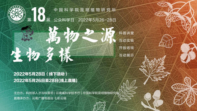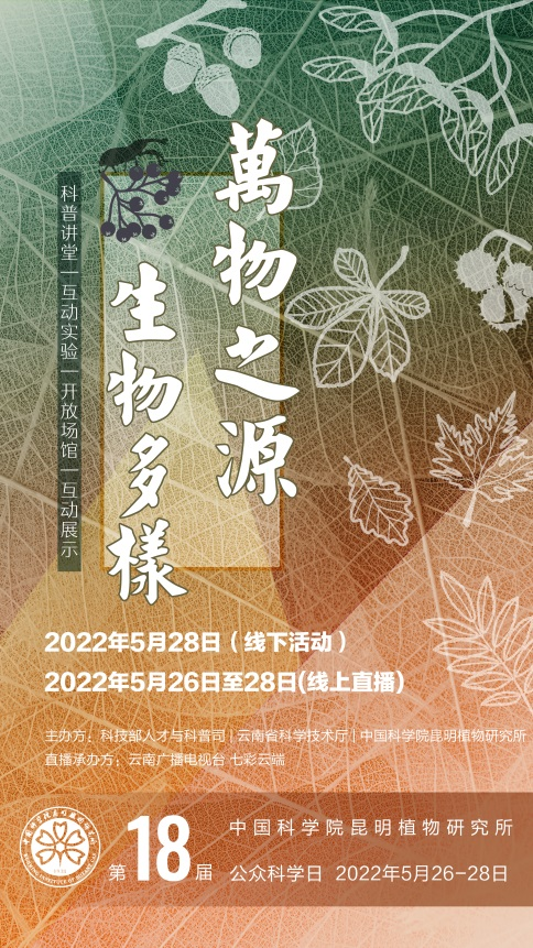 2022年中国科学院昆明植物研究所第十八届公众科学日暨全国科技活动周生物多样性轮值主场活动即将来袭!