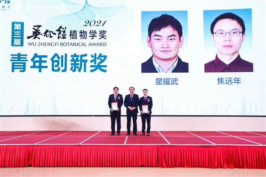 中国科学院院士、中国植物学会理事长种康为星耀武、焦远年颁奖。 中国科学院院士吴征镒是我国著名植物学家,从事植物科学研究七十余载,为中国植物科学事业的创新发展和走向世界做出杰出贡献。 吴征镒科学基金会理事长李宏伟介绍,2016年为吴征镒诞辰100周年,当年吴征镒科学基金会与中国植物学会共同设立了我国首个植物学专业奖项“吴征镒植物学奖”,旨在弘扬吴征镒严谨治学、无私奉献和执着追索的科学精神,奖励为发展中国植物科学事业出作重要贡献的植物学科技工作者,激励植物学科技工作者为建设创新型国家作出新贡献。 吴征镒植物学奖每两年评奖一次,每届由北京植物医生生物科技有限公司捐赠100万元奖金。此前,洪德元、周俊先后获颁杰出贡献奖,高连明、孔宏智、苏涛、郭亚龙等人先后获青年创新奖。(本文图片来源:中国植物学会) (科学网 2022年7月20日) |