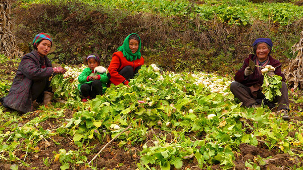 农户收获蔓菁 杨永平 摄 蔓菁 蔓菁(Brassica rapa ssp. rapa)隶属于十字花科芸苔属,是我国青藏高原藏族和西南地区彝族传统种植的作物,具有药用、食用、饲用等价值。蔓菁个头娇小带着鲜艳的皮,类似萝卜圆润,根细无筋,辛辣味浓,质地脆嫩,口嚼无渣,所以古时蔓菁还曾被用来当作主食。