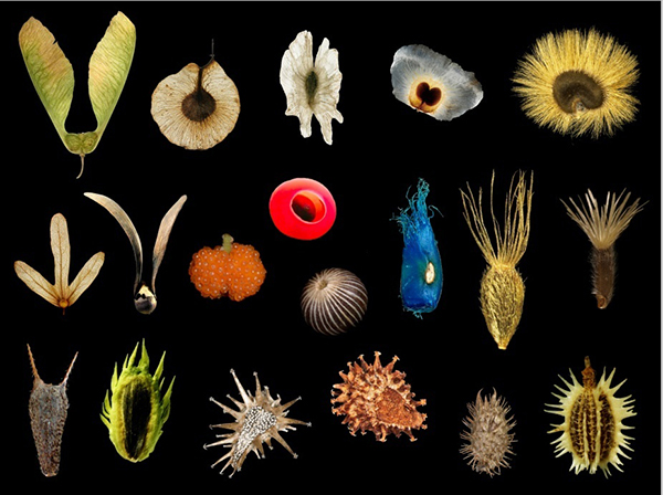 图1、种子/果实的多样性 扩散(Dispersal)一直是生物地理学和生态学的一个核心研究议题。在植物界,种子的扩散往往需要借助媒介完成,并且大多是短距离扩散(local dispersal),仅有约1%的扩散是长距离扩散(long-distance dispersal, LDD)。然而,长距离扩散却是生物多样性格局形成的关键驱动力,对生态系统的维持和稳定有着重要影响,是制约植物种群和群落大规模动态变化的关键要素。种群间的基因流、空白生境的拓殖和集合群落的重组,这些生态过程都与长距离扩散密切相关。此外,长距离扩散也可能剧烈扰动植物的演化进程。例如,一些物种经长距离扩散后拓殖到新的生境成为入侵物种,严重影响当地的生态系统和社会经济。在当今全球环境变化影响下,植物经长距离扩散可形成新的物种分布样式,以适应气候和生境变化。与此同时,长距离扩散对碎片化景观中群体的维持也有重要作用。然而,以往的研究主要聚焦在扩散的动因、过程及媒介等方面,对扩散后植物在新的生境中如何拓殖关注甚少;而物种能否在新的生境中存活并建立种群是评价长距离扩散成功与否的重要标准,但其影响因素和形成机制尚不清楚。
