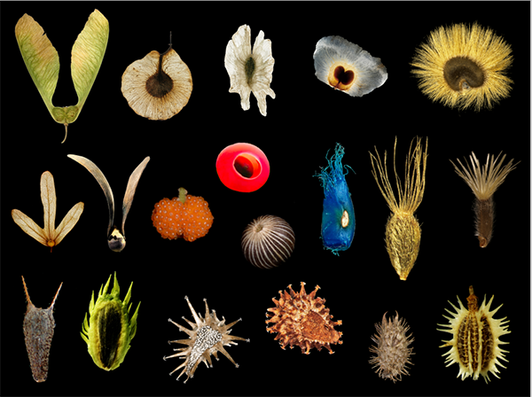 植物果实及种子的多样性 植物长距离扩散,影响生物多样性格局形成 自然界中,受植物自身“能力”与外在的水流、风媒、动物等因素影响,种子大多在短距离扩散。 然而,在植物漫长的演化和拓殖史中,长距离扩散才是生物多样性格局形成的关键驱动力,对生态系统的维持和稳定有着重要影响,是制约植物种群和群落大规模动态变化的关键要素。 “种群间的基因流、空白生境的拓殖和集合群落的重组,这些生态过程都与长距离扩散密切相关。此外,长距离扩散也可能剧烈扰动植物的演化进程。”昆明植物研究所李德铢研究员介绍,如常见的飞机草、紫茎泽兰、一枝黄花等,这些物种经长距离扩散后拓殖到新的生境成为入侵物种,严重影响当地的生态系统和社会经济。 “以飞机草为例,其强悍之处在于拥有异常粗壮的地下根茎,可以在地下横行霸道、扩张地盘。”中国科学院西双版纳热带植物园工程师莫海波介绍,而它的地上部分,可以一次性开出上万朵花,产生上万颗种子,并且拥有像蒲公英一样的“降落伞”,四处飘散,从而拥有超强的繁殖能力。 让人头疼的事不止于此,飞机草植株还可发生强烈的化感作用,通过分泌化学物质,抑制本土植物“邻居”的生长;其叶片还暗藏香豆素,对牛羊等牲畜有毒,因而罕有天敌。凡是飞机草入侵之地,要恢复原有的生物多样性就异常困难。 “在当今全球环境变化影响下,植物经长距离扩散可形成新的物种分布样式,以适应气候和生境变化。”论文第一作者、昆明植物研究所副研究员吴增源介绍,与此同时,长距离扩散对碎片化景观中群体的维持也有重要作用。 然而,以往的研究主要聚焦在扩散的动因、过程及媒介等方面,对扩散后植物在新的生境中如何拓殖关注甚少;而物种能否在新的生境中存活并建立种群是评价长距离扩散成功与否的重要标准,但其影响因素和形成机制尚不清楚。