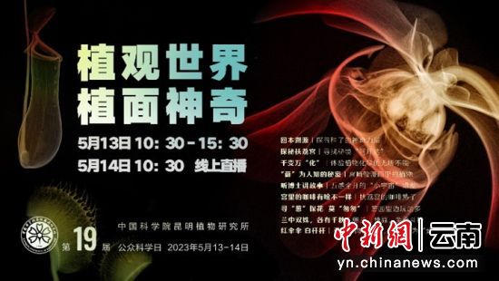 中新网云南新闻5月11日电(成洁焕)记者11日从中国科学院昆明植物研究所获悉,该所将于5月13日至14日举行以“‘植’观世界‘植’面神奇”为主题的第十九届公众科学日活动。届时公众可通过线上线下方式参与种子采集大PK、识毒菌、拍摄打卡独特葱花、体验植物化学实验等9个精彩项目。 本次活动旨在集中展示中国科学院科技创新成果,推动学部、院部科普融合,大力弘扬科学家精神,普及科学知识,传播科学方法,营造热爱科学、崇尚科学的良好社会氛围。活动为期两天,涵盖植物展示、趣味问答、科普讲座、拍摄打卡等内容。