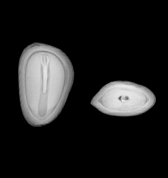 种子形态研究 对正确处理和贮藏种子极为重要 “你看这个豆科决明种子。”李涟漪指着X光照片,记者看到照片上的种子,有的内部是好的,有的却藏着个虫宝宝,但外表看起来都一样。 李涟漪说:“豆象将卵放入雌蕊柱头内,幼虫沿着雌蕊的花柱向下进入子房,再分散进入胚珠。胚珠所发育成的种子里就已经‘埋伏’下豆象的幼虫。”如果不用X光机拍摄,或者不切破种皮,是根本不知道哪些种子被虫蛀了。
