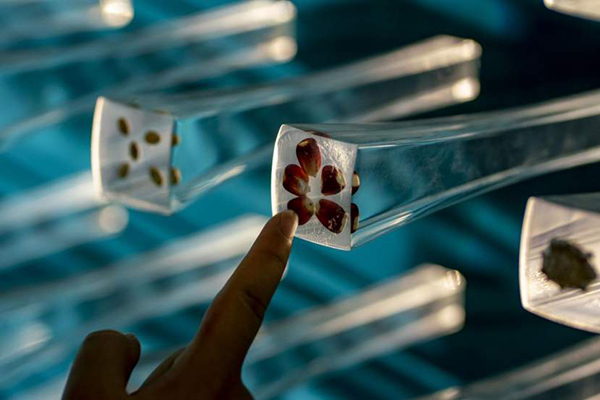 种子博物馆中的“希望”组培苗装置。徐俊摄 当然,种子博物馆并非种子实际的保存方式。博物馆的展陈主要用于科普,展示种子的多样性以及种子与人类的关系。更多宝贵的种质资源,珍藏在中国科学院昆明植物研究所内的中国西南野生生物种质资源库中。