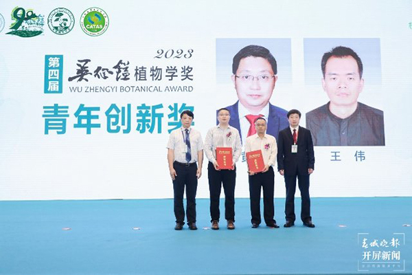第四届吴征镒植物学奖杰出贡献奖获奖人为中国科学院院士、中国科学院分子植物科学卓越创新中心研究员陈晓亚;青年创新奖获奖人为中国科学院昆明植物研究所研究员黄胜雄、中国科学院植物研究所研究员王伟。中国植物学会名誉理事长许智宏院士、中国植物学会副理事长汪小全研究员和孙航研究员为获奖人颁发获奖证书和奖牌。