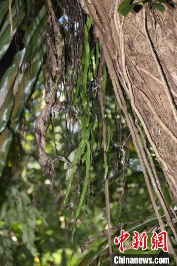 中新网昆明1月2日电 (记者 胡远航)记者2日从中国科学院昆明植物研究所获悉,近日,高黎贡山国家级自然保护区怒江管护局、贡山管护分局联合该所对高黎贡山北段进行种质资源调查,在独龙江季风常绿阔叶林中发现一丛附生于树干上的带状瓶尔小草,其生长状态良好,并有孢子囊穗发育。