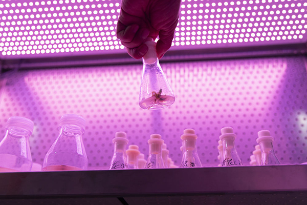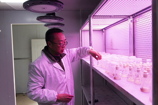 3月27日,许琨在丽江高山植物园野外台站组培室内查看进行萌发实验的黄花杓兰。 据他介绍,兰科杓兰属是珍稀濒危极小种群物种,种子萌发条件比较困难,每年新的幼苗比较少。经过几年的持续研究,他们已初步掌握4个兰科杓兰属物种种子无菌萌发技术,为后续生产提供了技术保障。