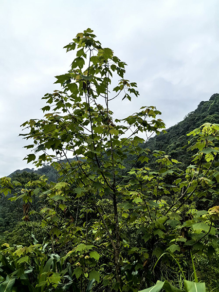 故事的开场颇像电影情节。2008年10月的一天,孙卫邦收到一个“来历不明”的包裹。他没有贸然打开纸箱,而是照着寄件人电话打过去,电话那头是漾濞县石钟村的村民张国树,他受中国科学院植物研究所博士陈又生所托,给孙卫邦寄了他采集的上千颗漾濞槭种子。 2001年,陈又生在四川大学标本馆查看标本时,发现一份采自石钟村马鹿塘的贡山槭标本,特征与贡山槭有别。他推测这应是一个新种。次年4月,陈又生来到马鹿塘,几经周折,在村子附近找到了这种槭树。果然,这种槭树是漾濞特有的一个新种,2003年陈又生等人发表文章将其命名为漾濞槭。 发现之初,人们仅找到5株漾濞槭。时任马鹿塘村民小组长的张国树,承担起漾濞槭的日常巡护工作。他经常去看那几棵树,防止被人砍伐和牲畜啃食。 挽救濒危的漾濞槭,必须突破授粉、种子萌发两大关口。 最初,科研人员尝试指导村民人工授粉,但没有奏效。张国树想出个土办法,到了漾濞槭花期,把一棵树上开花的枝条砍下,绑在另一棵树上,没想到竟然授粉成功了。秋天,他收获了一批漾濞槭种子。按照陈又生嘱咐,他给孙卫邦寄了一批。 自然环境中,漾濞槭种子萌发率非常低。孙卫邦不敢怠慢,带领团队迅速研究,掌握了“唤醒”种子的关键技术,培育出1600余株漾濞槭幼苗。 后续研究发现,这些植株授粉来源不止5个单株,这意味着野外还有未被发现的漾濞槭。2016年,在当地相关部门协助下,孙卫邦团队在漾濞县各乡镇扩大范围调查搜索,最终在12个地点找到577株新的漾濞槭。