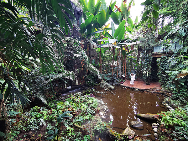 园内小径 云南是一块美丽富饶的宝地,山奇水异,地形独特,高山大江纵横,背靠青藏高原,面向中南半岛。其境内有海潮如海的热带雨林,五彩缤纷的高山草甸,终年不化的皑皑白雪,峻峭幽深的高山峡谷,热带、亚热带、温带和高山寒带等多种气候齐全。复杂多变的地形和气候孕育了丰富多采的植物种类。土地面积仅占全国面积4%的云南,高等植物多达15000多种,占全国总种数的一半,因而获得了“植物王国”的美誉。因此昆明植物园享有得天独厚的生态环境与自然条件。 该园始建于 1938 年,地处“植物王国”云南省首府昆明市北郊黑龙潭风景区,海拔 1914-1990 米。属中亚热带内陆高原气候,年平均气温 14.7℃,年平均降雨量 1006.5 毫米,年平均相对湿度 73%。已建成了山茶园、岩石园、竹园、水生植物园、中乌全球葱园(昆明中心)、羽西杜鹃园、观叶观果园、百草园、蔷薇园、木兰园、金缕梅园、极小种群野生植物专类园、壳斗园、扶荔宫温室群(包括隐花植物馆、主体温室、兰花馆、食虫植物馆等)、裸子植物园等 16 个专类园,收集保育来自全球、特别是我国西南地区的重要植物资源 8840 余种及品种。目前已成为集科研、科普、旅游、教学实习为一体,具有云南特色的多功能综合性植物园。