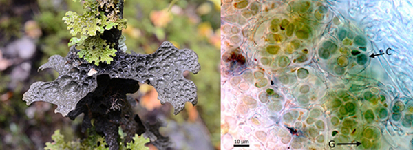 新华网昆明5月29日电(记者 岳冉冉)近期,中国科学院昆明植物研究所研究人员在对青藏高原的肺衣属研究中发现,蓝藻型肺衣的共生藻层中同时也出现了绿藻。研究人员推测,这类蓝藻型肺衣获取绿藻是一种偶然现象,与绿藻共生或许是对高海拔地区低温干旱环境的适应性表现。成果于近日发表在了国际期刊《AOB Plants》上。 论文通讯作者之一、中国科学院昆明植物研究所副研究员王欣宇介绍,地衣是真菌和藻类通过互惠共生而组成的复合体,它的共生藻主要分为绿藻和蓝细菌(蓝藻)两大类,通常地衣只选择其中一类进行共生,即蓝藻型地衣或者绿藻型地衣。蓝藻需要有液态水才能进行光合作用,而绿藻则可以在没有液态水的条件下通过气态水进行光合作用。