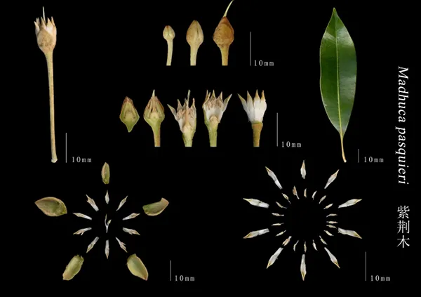 紫荆木又名滇紫荆木、滇木花生、出奶木,高可达30米,生长于热带季风区的广东西南部、广西南部、云南东南部、贵州荔波等地海拔1400米以下的混交林中或山地林缘,在越南亦有分布。花期6-9月,花多朵簇生于叶腋,味香,花梗被锈色或灰色短柔毛;果期10月至翌年1月,果实椭圆形,果皮肥厚,成熟时味甜可食用;种子1-5枚,子叶为紫红色。 紫荆木是稀有的油料树种和珍贵的用材树种,值得大力推广,可作为国家重要战略储备资源。种仁含油率高,可达45%,味香可食用;树皮含单宁,可用作栲胶原料;树干含丰富的白色乳汁,可提取硬橡胶。在越南北部地区,紫荆木被广泛用于家具和单板制造。紫荆木还具有极高的药用价值,其叶片中含有多种活性成分,叶片的甲醇提取物对巨噬细胞有显著的抑制作用,具有消炎作用。