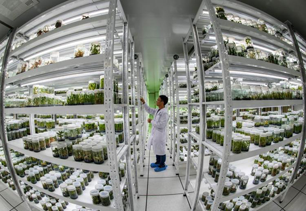 Photo taken on Oct. 20, 2021 shows somatic embryogenesis of cryopreserved embryogenic cells at the Germplasm Bank of Wild Species in Kunming, southwest China's Yunnan Province. (Xinhua/Jiang Wenyao) NEW TECHNOLOGY FOR PERMANENT PRESERVATION "At present, we are working on the technology of seed cryopreservation. If successful, seeds will be placed in liquid nitrogen at minus 196 degrees Celsius after special treatment, which may achieve permanent preservation of seeds," said Lin Liang, a senior engineer at the Kunming Institute of Botany. Cryobiotechnology is the combination of ultra-low temperature preservation technology and a regeneration system. Clad in a full-body protective suit to shield against the extreme cold of liquid nitrogen, Lin carefully extracted embryos from magnolia tree seeds stored in a cryopreservation tank. The embryos were then tested to determine if they would successfully regrow upon thawing. Cryobiotechnology plays an important role in the long-term conservation of recalcitrant seeds, endangered plants, important crops and their wild relatives, Lin said. "Many wild plants have genes that help them to survive in harsh environments and make them disease or drought-resistant. In the future, we might need these genetic materials to breed new crops that can better adapt to the changing climate," he added. However, the seeds will not remain in hibernation indefinitely. "Every five or ten years, we break the seed dormancy, take a small sample, and conduct germination experiments to assess their viability," said Yang Juan, a GBOWS seed germination supervisor. Cai underlined the seed bank's direct impact on people's daily lives, highlighting wild rice as a prime example. The genes of hybrid rice, developed by the late renowned Chinese scientist Yuan Longping, are derived from wild rice. In 1970, Yuan's team discovered male sterile plants of wild rice in China's southernmost province of Hainan. Years later, they successfully bred hybrid rice using these wild rice plants, greatly increasing rice yields in China. "As the late renowned botanist Wu Zhengyi had said, a species affects a country's economy, and a gene relates to a country's prosperity," Cai said. Speaking about future plans, Cai said they will advance international cooperation on seed collection and duplication. "Seeds symbolize life and hope. It's our common responsibility to better protect the future of humanity," Cai said. (新华社 2024年6月26日) 来源:https://xhnewsapi.xinhuaxmt.com/share/news_pc?id=967487914741760&showType=3002&utdId=c34a3ceff8924eeb97703635b816953d&version=4.0.2&twoShare=1 |