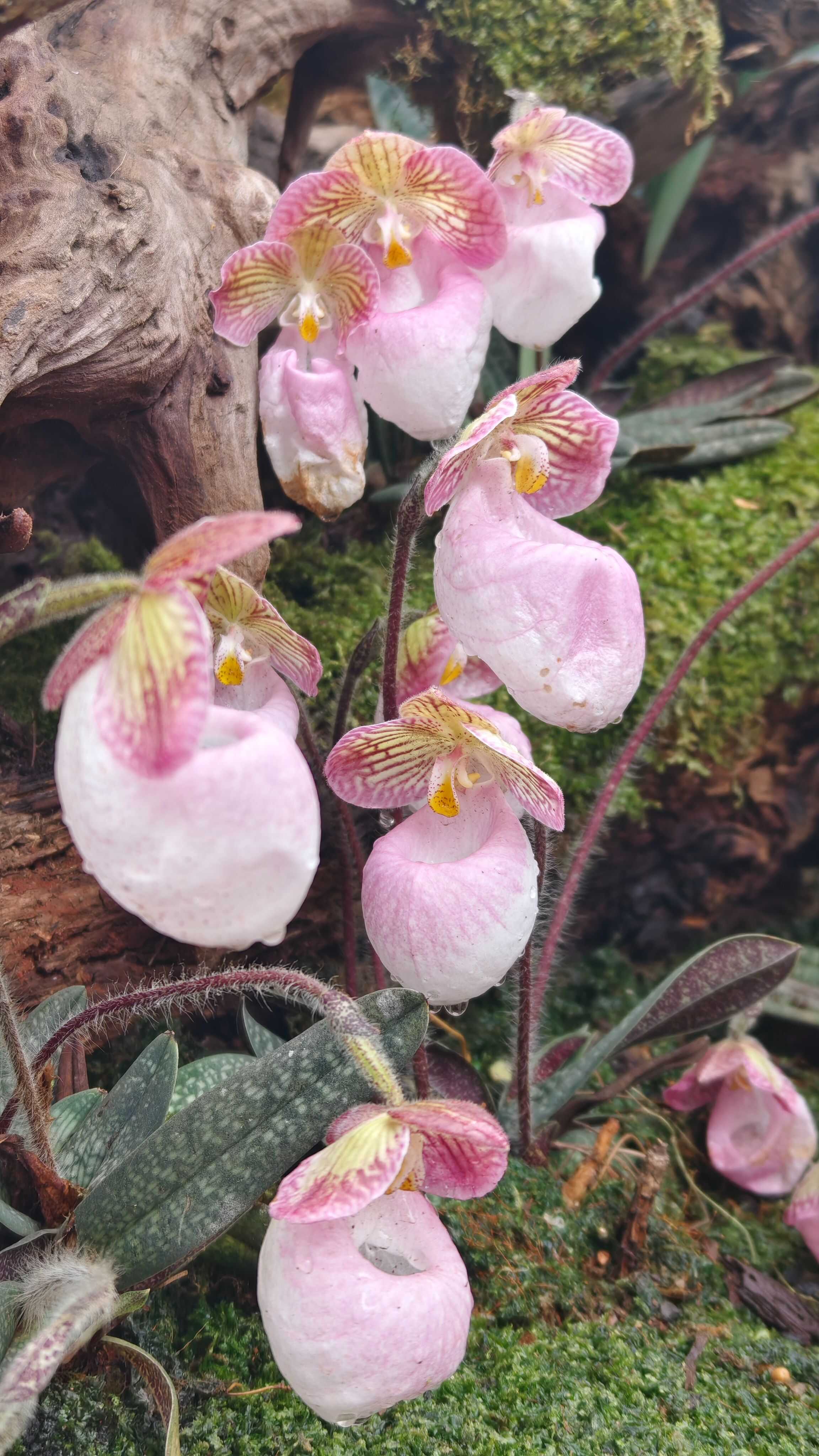 “我们可以通过这个装置,理解兰花的生存智慧。”中国科学院昆明植物研究所工程师李函润介绍,世界上三分之一的兰花在传粉时采用了“欺骗”的方式。以兜兰属为例,杏黄兜兰等通过鲜艳的颜色和花香吸引传粉者访花,兜兰的唇瓣进化出斑点,引诱传粉者进入兜兰的“兜”,经过通道时会把花粉带走。
