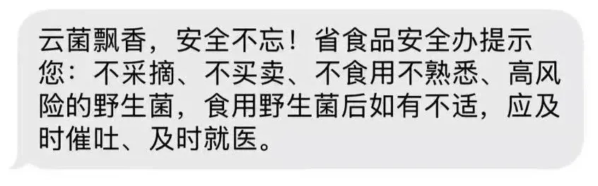 吃野生菌中毒画面。 这不是个例 每年菌子季一到 总会有因菌子中毒产生幻觉的人 在医院进行“无实物表演” 遗憾的是 网友不仅津津乐道于所谓的“小精灵” 更有人猎奇尝试毒菌 当云南人收到这样一条预警提示短信 意味着一年一度的“吃菌季”正式开启