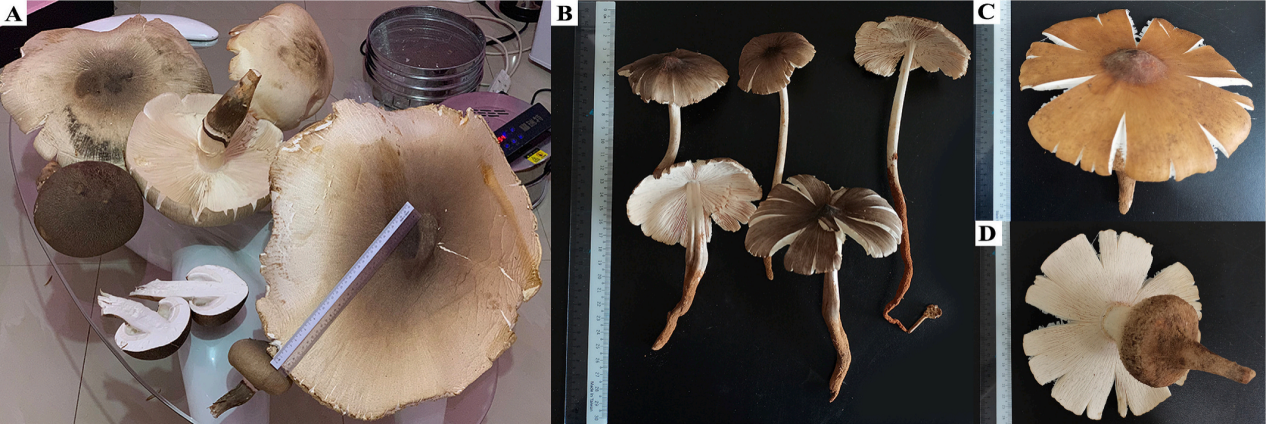 鸡枞菌(蚁巢伞属,Termitomyces R. Heim)是与大白蚁亚科Macrotermitinae共生的一类野生食药用真菌。蚁巢伞菌肉酷似鸡肉,烹饪时鲜味浓郁,其独特的感官品质深受消费者喜爱,具有很高的市场价值。目前常用分子生物学技术结合形态学描述对蚁巢伞物种进行分类学鉴定。至今,已有68个蚁巢伞物种被报道,其中44个种含有分子数据。 研究表明,当前真菌分类鉴定正逐步趋向于采用多相方法,即融合形态观察、分子生物学技术及化学分类学来精准确定物种分类地位。其中,挥发性有机化合物(VOCs)作为化学分类中一类关键的代谢物指标,不仅是影响蘑菇气味特性的主要因素,也为物种鉴定与系统演化研究提供了新的视角。然而,基于VOCs谱分析在大型真菌化学分类中的应用报道较少,尤其在蚁巢伞属中的应用研究也尚未见报道。为此,中国科学院昆明植物研究所山地中心研究团队联合泰国研究团队对三种蚁巢伞(T. titanicus,T. intermedius和T. bulborhizus)进行挥发性谱分析。