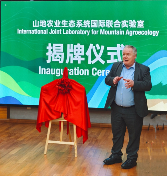 云南省国际联合创新平台“山地农业生态系统国际联合实验室”揭牌 文章来源:资源植物与生物技术重点实验室 | 发布时间:2023-07-31 | 作者:许建初,李雄 | 浏览次数: | 【打印】 【关闭】 7月28日,中国科学院昆明植物研究所副所长普诺·白玛丹增和国际林业研究中心-世界农用林业中心(CIFOR-ICRAF)首席科学家Fergus Sinclair先生为云南省国际联合创新平台“山地农业联合实验室”(International Joint Laboratory for Mountain Agroecology,以下简称‘山地农业联合实验室’)”揭牌,中国科学院昆明植物研究所和CIFOR-ICRAF双方40余人出席揭牌仪式。该实验室于6月30日获得云南省科技厅立项支持。