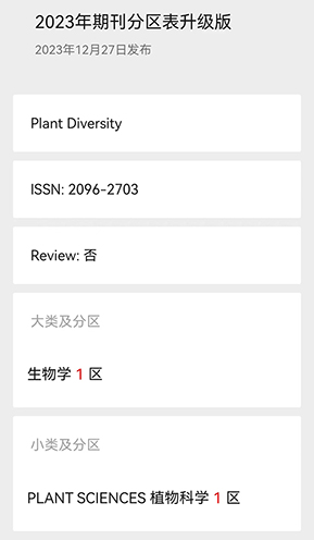 近日,《2023年中国科学院文献情报中心期刊分区表》正式发布,中国科学院昆明植物研究所所办期刊Plant Diversity(PD)首次入选生物学大类1区和植物科学小类1区期刊。 2023年期刊分区表在秉承方法科学、数据客观的基础上,发布基于“期刊超越指数(JSI)”的升级版。 据悉,最近中国知网和清华大学图书馆也发布了2023年国际影响力TOP期刊榜单,PD连续五年(2019-2023)入选“中国国际影响力优秀学术期刊”(TOP 5-10%),此外,也被科技期刊世界影响力指数报告收录,入选2022年度“顶尖期刊”名单。