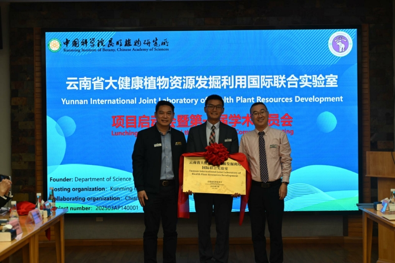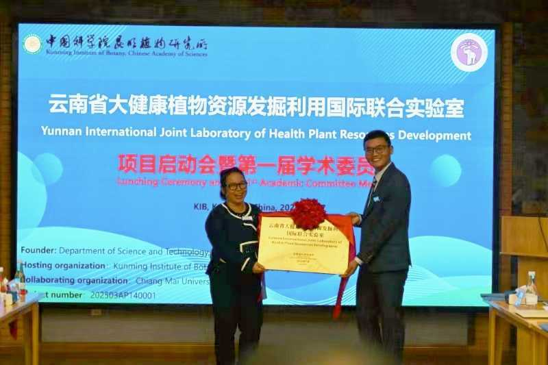 9月27日,“云南省大健康植物资源发掘利用国际联合实验室”(Yunnan International Joint Laboratory of Health Plant Resources Development,HPRD Lab)项目启动会暨学术委员会第一次会议在昆明举行。 国际联合实验室项目启动会议集体照 该项目由云南省科学技术厅重点研发计划支持,中国科学院昆明植物研究所牵头建设,泰国清迈大学参与共建。此次中泰携手共建实验室,正是基于云南与泰国地缘相近、生态相似、人文相通的独特优势,以及双方在大健康领域的科研互补性——昆明植物所在民族植物学、植物资源发掘利用领域积累了数十年的科研经验;泰国清迈大学则在热带植物研究、健康食品开发及区域市场对接方面具备显著优势。 实验室学术委员会汇聚了国内外顶尖专家力量,包括中国科学院昆明植物研究所裴盛基研究员、丹麦奥胡斯大学亨里克・鲍尔斯莱夫教授、英国伦敦大学药学院米歇尔・海因里希教授、泰国清迈大学帕尼·西里萨-阿德教授等8位中外学者。他们将为实验室研究方向校准、重大课题评审提供高水平学术指导,确保研究成果兼具科学性与应用价值。 昆明植物所领导与泰国清迈大学学院领导共同为国际联合实验室揭牌 实验室将围绕中泰大健康植物资源国际化发展中的共性问题,在构建跨国资源研究网络与数据集、突破贸易堵点与技术瓶颈、打造国际化科研与人才梯队这三大核心任务上发力。 启动会上,中泰双方代表共同为实验室揭牌,并就首批4个研究课题的实施方案达成共识。 国际联合实验室中方项目负责人向泰国清迈大学代表授牌 |