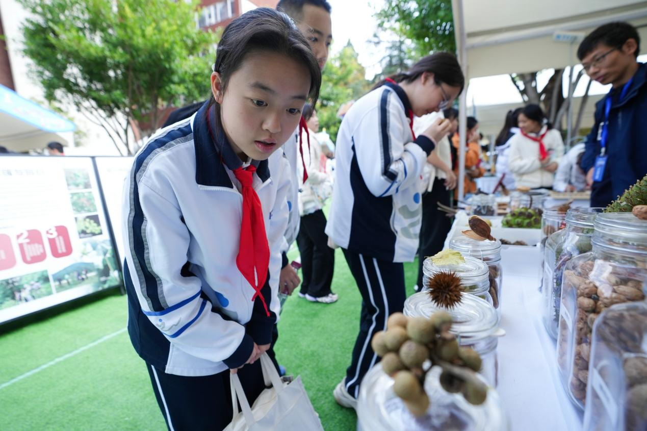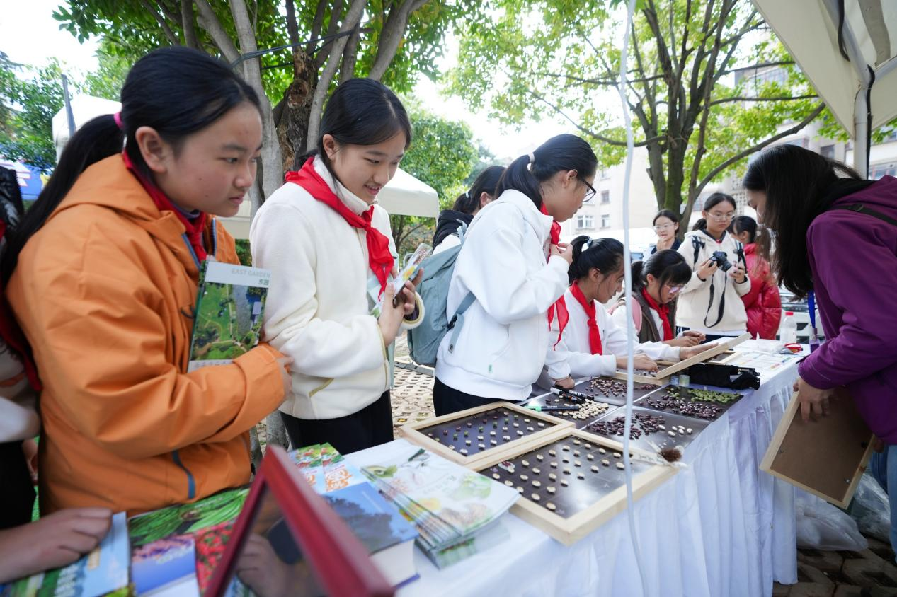 在“科创荟”现场活动中,中国西南野生生物种质资源库为现场公众带来了一场“种子盛宴”。作为国家重大科技基础设施,中国西南野生生物种质资源库现已保存各类野生生物种质资源2.9万种,34.7万份/株(含复份)。本次活动,种质库带来特色野生植物的种子和果实进行展示,包括珙桐、炮弹果、木蝴蝶、猪腰豆等形态各异的果实和种子。昆明植物园带领现场公众近距离接触植物的果实、种子,制作成“种子日历”,让公众充分感受自然造物的艺术之美,也传递着保护生物多样性的信念,共同守护地球的未来。同时,以图文展板、科研成果专著的形式展示昆明植物园30年来极小种群野生植物科研保育成果,深入解读引领国际同行的极小种群植物的保护理念、生存现状、生态意义及保护举措,引导公众关注并切实参与生物多样性保护和生态文明建设。