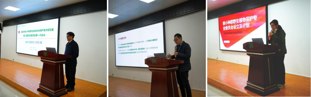 工作汇报 与会委员认真听取各项汇报,并围绕重点实验室的发展方向、科研布局与机制建设展开深入讨论,提出多项具有建设性的意见与建议。学术委员会对重点实验室在极小种群野生植物综合保护方面取得的突出成果表示充分肯定,认为其实践对推动中国乃至全球植物多样性保护与研究具有重要意义。委员们建议,重点实验室应在高质量完成现有科研任务的基础上,紧密围绕国家与地方重大战略需求,聚焦物种多样性保护的前沿科学问题与关键共性技术,积极争取并承担国家及地方重大科技项目,力争产出更多高水平科技成果。特别要在“利用型保护模式”方面实现突破,形成一批“在保护中利用、在利用中保护”的典型案例,生动践行“绿水青山就是金山银山”的生态文明理念,为国家社会经济可持续发展贡献力量。 此外,委员们审议了重点实验室开放基金的设立原则,建议围绕实验室核心团队尚未覆盖的研究方向进行重点布局与资助,持续巩固和提升重点实验室在极小种群野生植物保护研究中的引领与带动作用,确保开放基金能够产出高水平科研成果。同时,对“极小种群野生植物保护专业委员会”的职能定位、业务范围与未来工作重点也提出了具体指导意见。