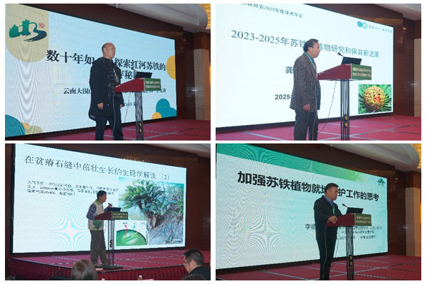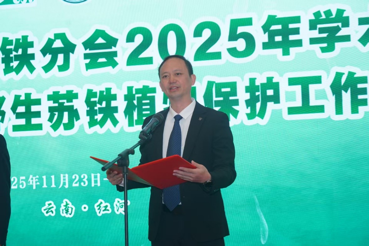红河州林业和草原局副局长邵亭龙致辞 本次会议邀请了3个特邀报告及14场专题学术报告,与会者围绕苏铁植物的基础研究前沿、野外调查与回归实践、花粉采集和保藏技术等多个关键领域,开展了系统而深入的交流研讨。会上学术氛围浓厚,讨论热烈,取得了丰硕的交流成果。