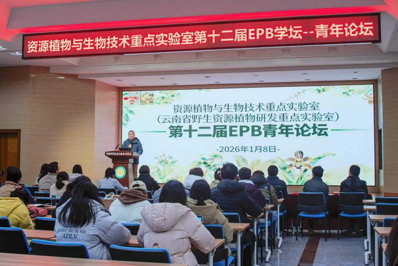 资源植物与生物技术重点实验室(云南省野生资源植物研发重点实验室)第十二届 EPB 学坛 —— 青年论坛顺利举办 1 月 8 日,资源植物与生物技术重点实验室(云南省野生资源植物研发重点实验室)第十二届 EPB 学坛 —— 青年论坛举办。研究所及实验室相关领导、导师、青年科研人员及研究生共计80余人参与本次论坛,现场学术交流氛围浓厚,思想碰撞热烈。 中国科学院昆明植物研究所副所长吴建强在致辞中提到,EPB 青年论坛已连续举办十二届,本次报告涉及多个交叉研究领域,期待本次论坛能促进跨领域思想碰撞、催生更多创新火花。本次青年论坛博士研究生组由杨茂主持,硕士研究生组由何如意主持,博士后及工作人员组由张俪斌主持。
